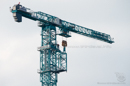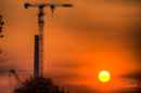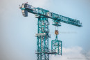 Fotos im Sonnenuntergang, sowie Bilder des Klettervorganges. Ein 5,8m 1000HC-Turmstück konnte mit Hilfe der neuen Klettereinrichtung für das 1000HC-Turmsystem in knapp einer Stunde, incl. Hüben im 4-Strang-Betrieb, verbaut werden. Die Klettereinrichtung ist so konzipiert, dass nur ein Kletterschritt pro Turmstück nötig ist.